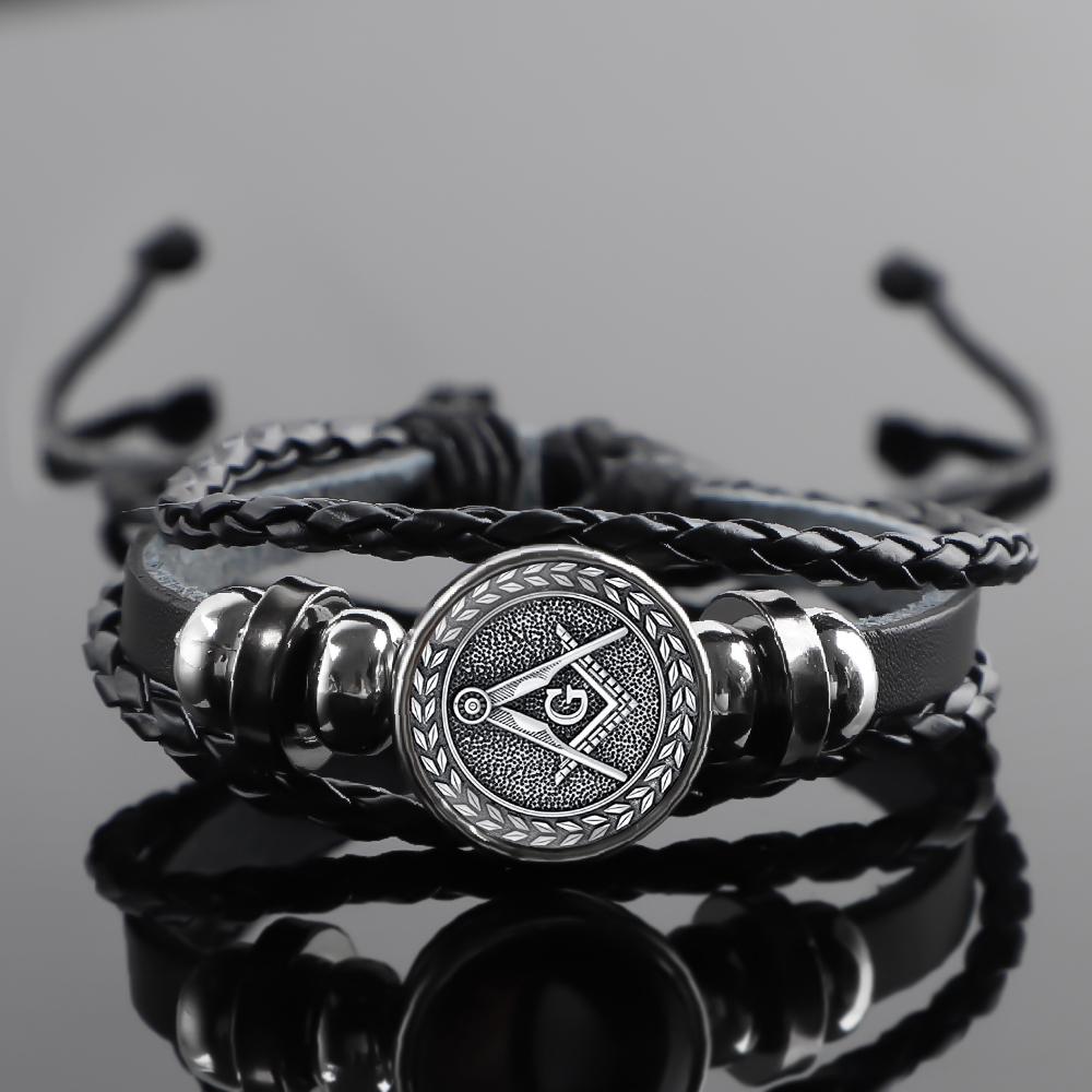 Freemasonry Vintage Leather Rope Bracelet Handmade Multilayer Braided Charm Jewelry Gift for Men Women