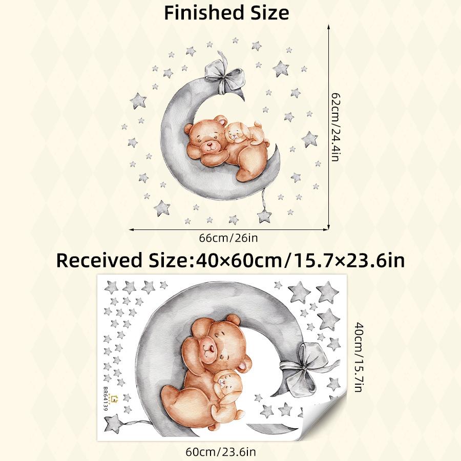 Cartoon Sleepy Bear with Stars and Moon Wall Stickers, Self-Adhesive Decor for Kids Room Background Decoration