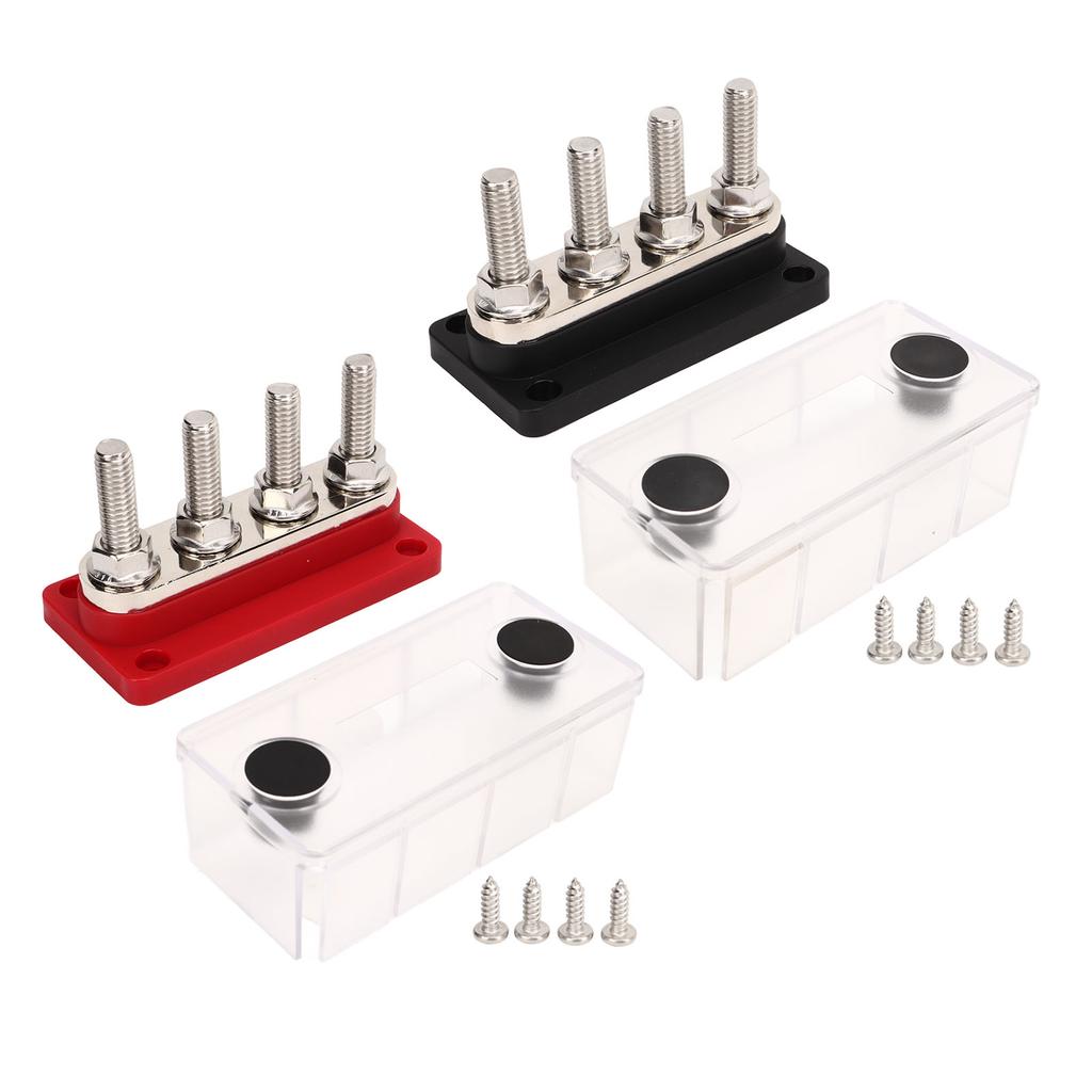 Power Distribution Junction Post 300A 4 M10 Stud Easy Installation Marine Bus Bar High Conductivity with Dust Cover for RVs