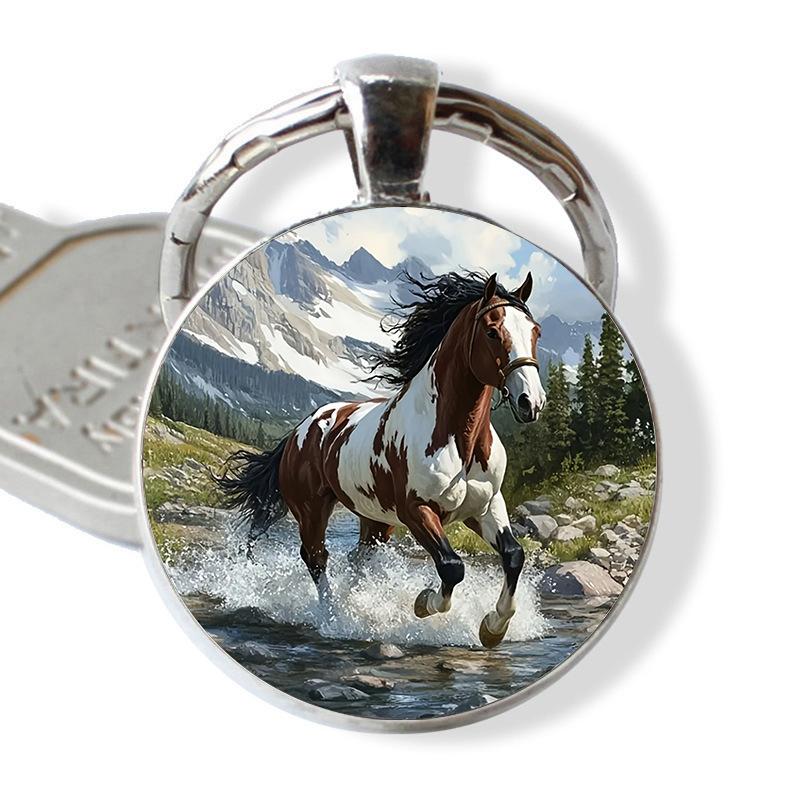 Running Horse Keychain Single-Sided Glass Cabochon Horse Pattern Animal Key Ring Equestrian Accessories For Men Women