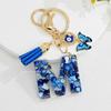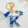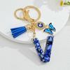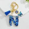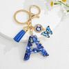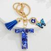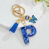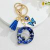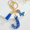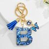 Fashion Blue Glazed Stone A To Z Letter Keychain 26 Initials Alphabet Butterfly Tassel Pendant Car Keyring Women Jewelry Gifts