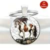 Fashion Vintage Horse Pattern Design Dome Glass Alloy Keychain Backpack Pendant Hanging Decoration Car Keyring Gifts