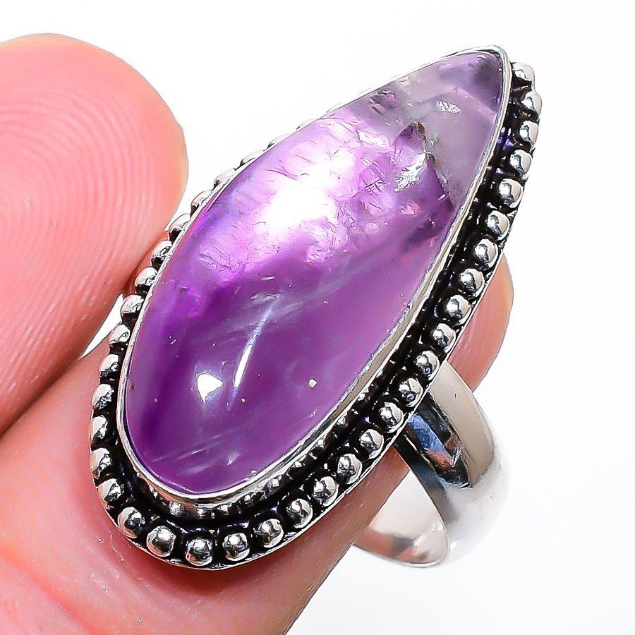 Tilte:- Sage Amethyst Handmade Gemstone 925 Sterling Silver Jewelry Ring 9 z125