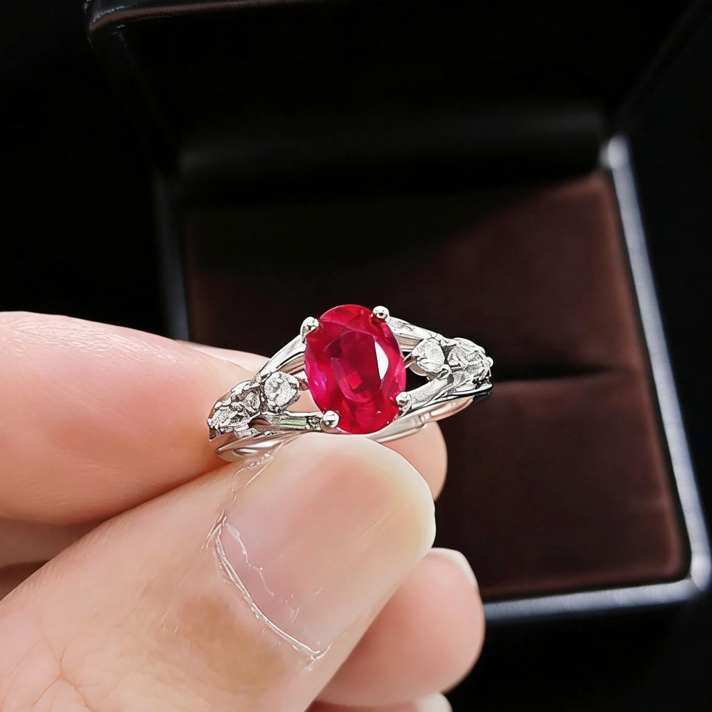 Jewelry Imitation Pigeon Blood Red 6 * 8Mm Oval Ruby Ring Light Luxury Premium Emerald Ring