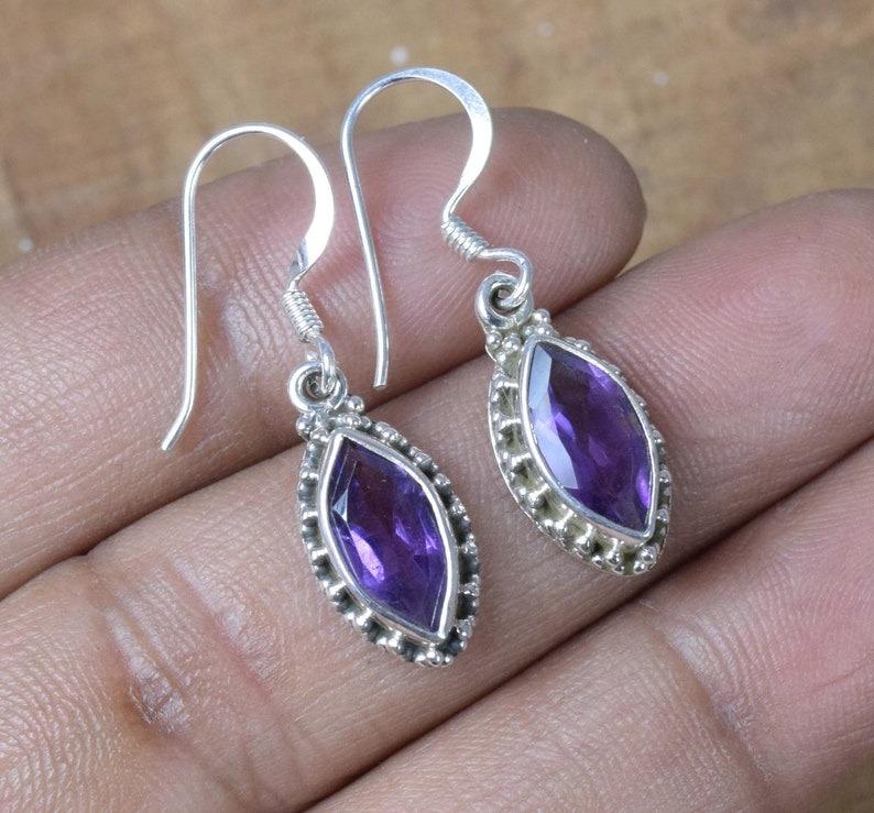 Solid 925 Sterling Silver Amethyst Gemstone Handmade Boho Designer Earrings Jewelry