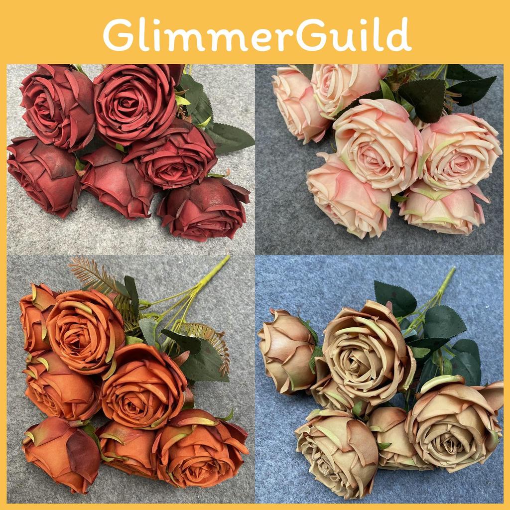 This artificial flower bouquet measures 17.7 inches in height and features a realistic design crafted using high-quality materials. Its detailed craftsmanship showcases vibrant colors including deep red, coffee, blue-green, cream, autumn orange, champagne pink, and brick red, offering versatile decorative options.