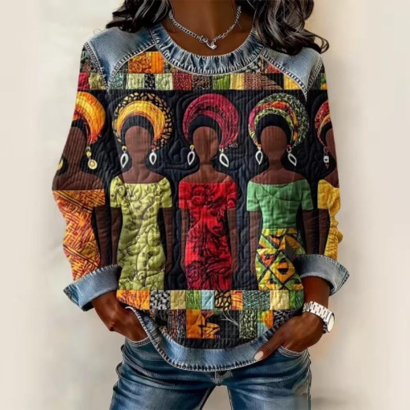 Spring Popular Women's Waffle Top with Back Neck Slit Long-sleeved Round Neck Sweatshirt