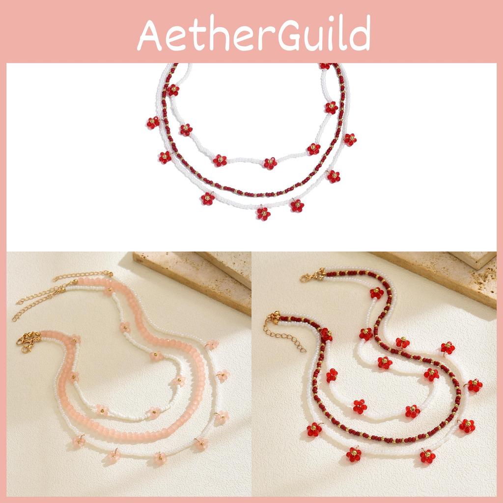 Boho Floral Beaded Necklace For Women Handmade Multilayer Summer Accessory