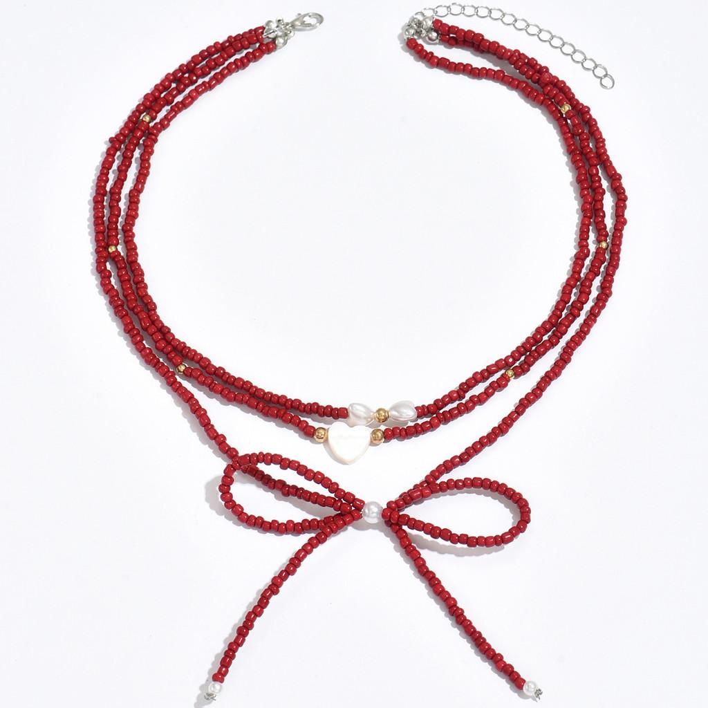 This necklace features a delicate butterfly knot design crafted from beads. Measuring in length, it blends casual elegance with modern style. Ideal for layered wear during summer events or daily accessories, its easy to maintain with gentle wiping.