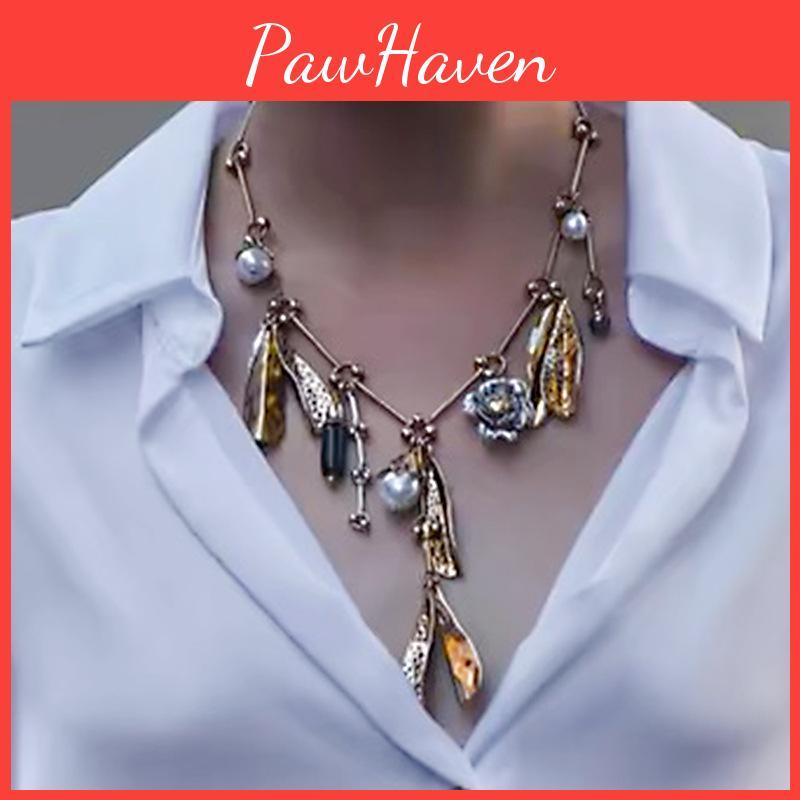 This vintage-inspired layered pendant necklace features a geometric design with leaf, flower, and pearl accents, crafted from zinc alloy with an electroplated finish. Measuringin length, it offers a bold, trendy look for women's street fashion. Ideal for winter outfits, it complements casual or edgy styles. To maintain its appearance, wipe clean with a soft cloth.