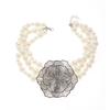 Cross Necklace With Pearl Chain And Floral Design For Womens Fashion Accessories