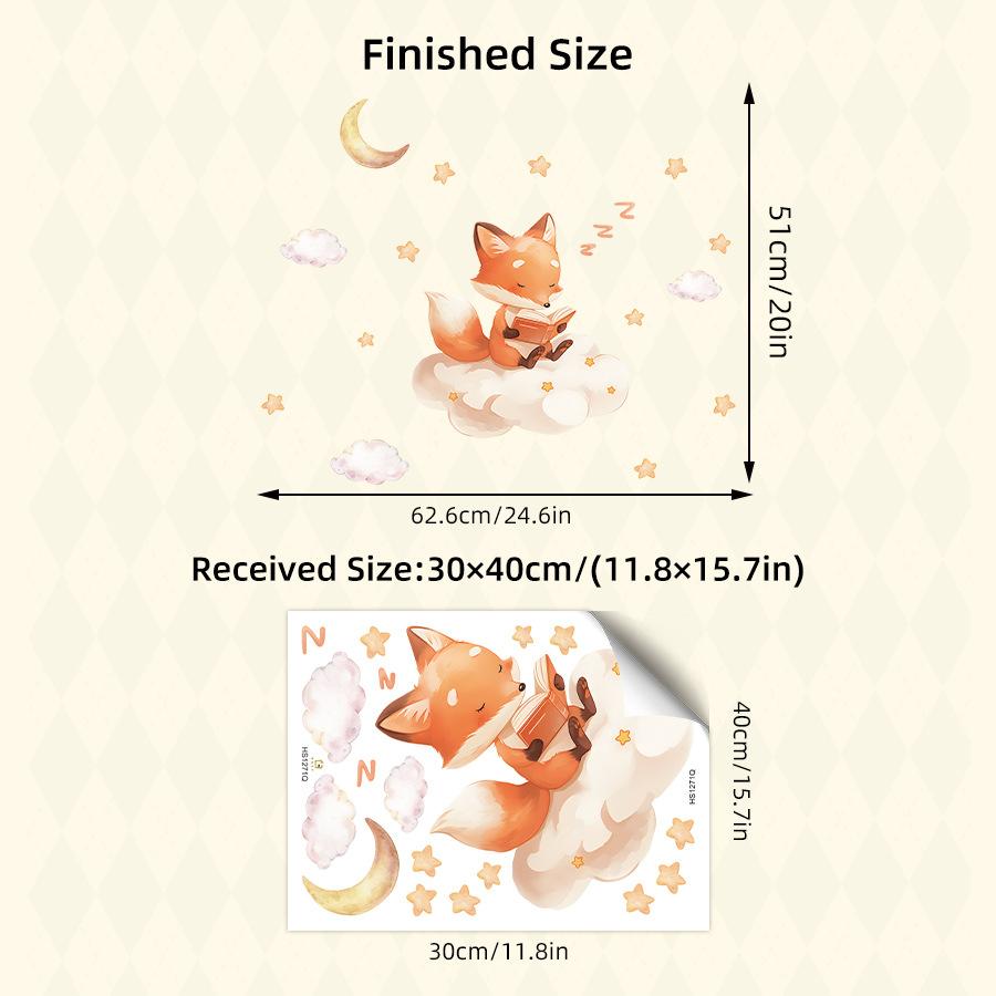 Little Fox Telling Bedtime Story Under Stars and Moon Wall Stickers, Self-Adhesive Fairy Tale Decor for Kids Room Nursery Decoration
