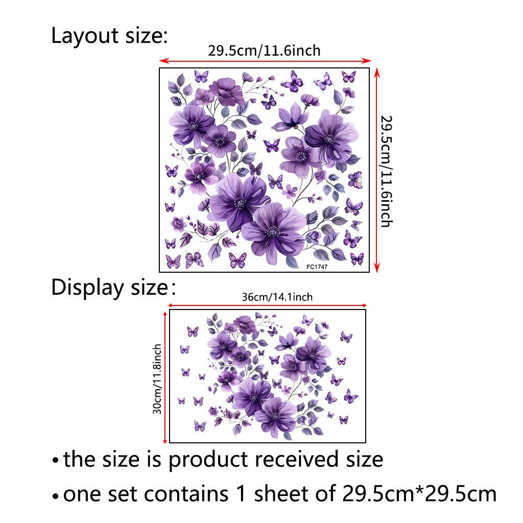 Purple Floral Butterfly Wall Stickers, Removable Anti-Static Waterproof Self-Adhesive PVC Decals for Living Room Bedroom Home Decor