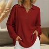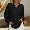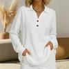 Women's V-neck Button-down Knit Color Loose Pullover Long-sleeved Top