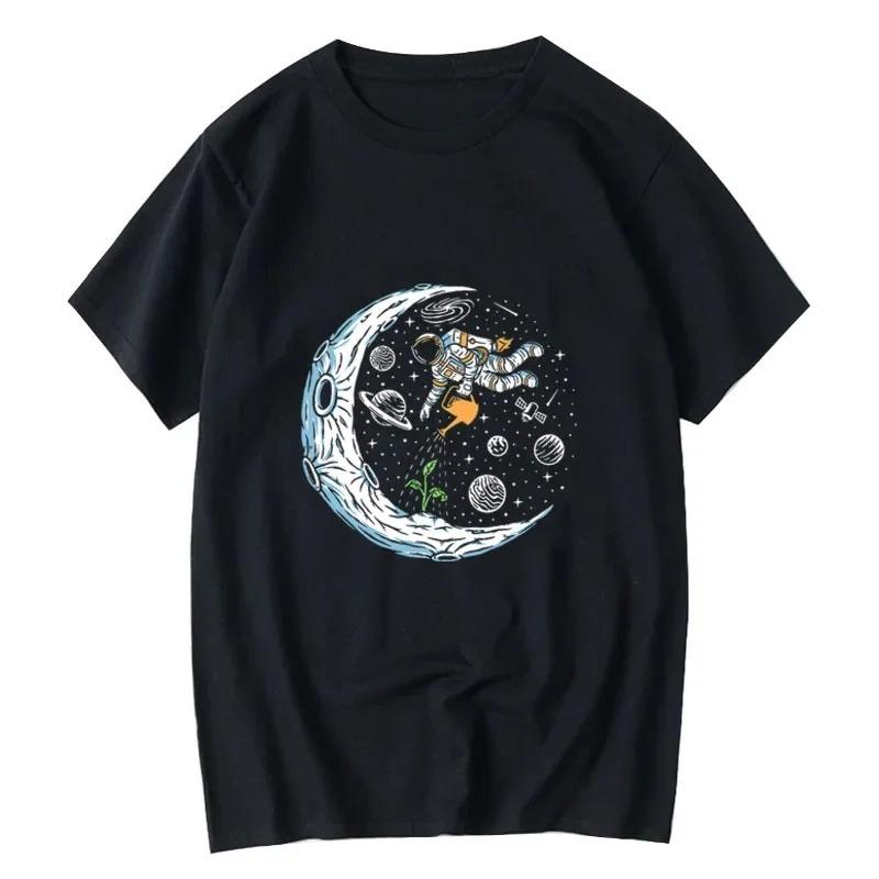 Summer Tshirt Casual Funny Astronaut Design Lunar Astronaut Print Round Neck T Shirt for Short Sleeve FeUnisex Tops Clothing