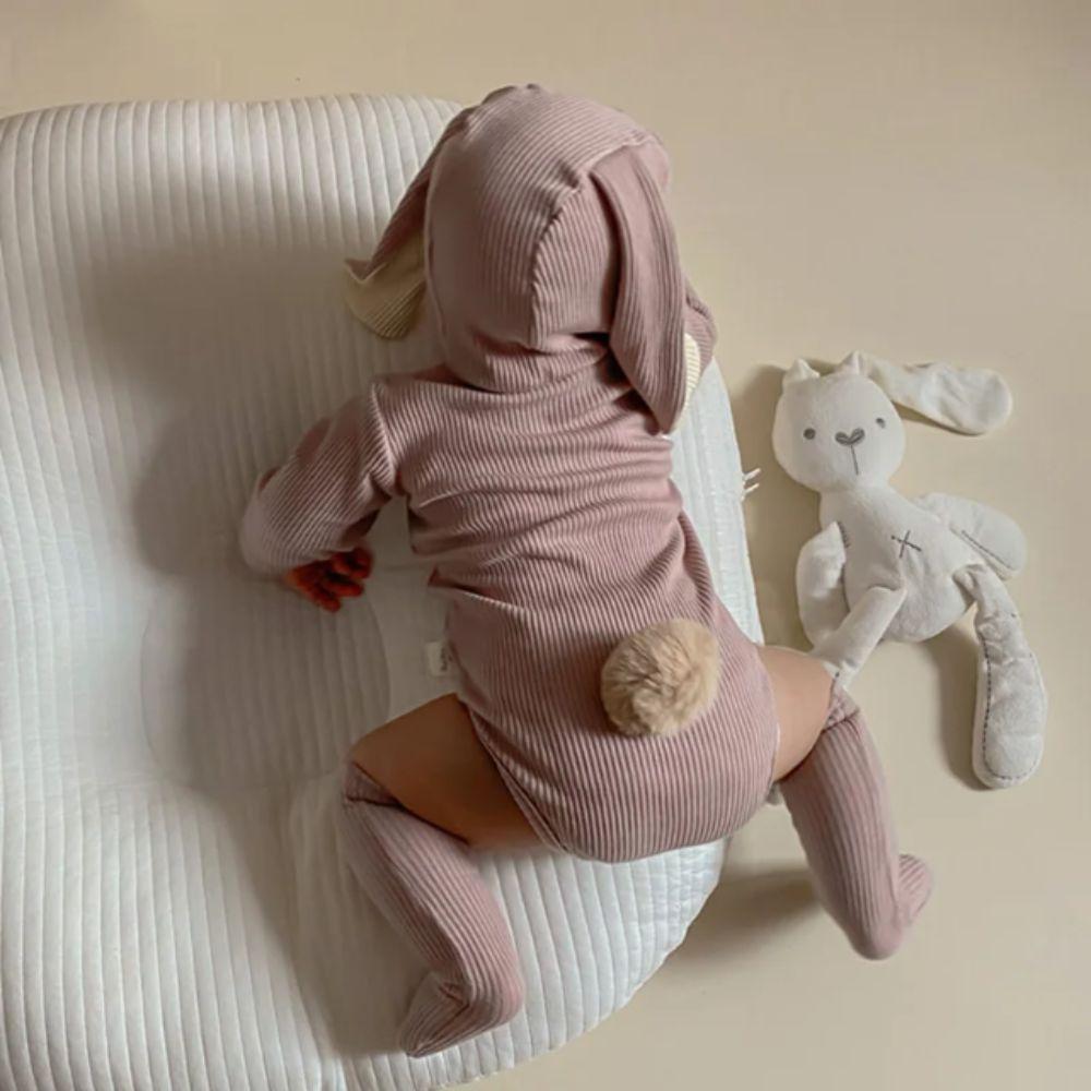 Ribbed Texture Bunny Costume Cotton Solid Baby Bodysuit Rabbit Romper Sets Infant Girls