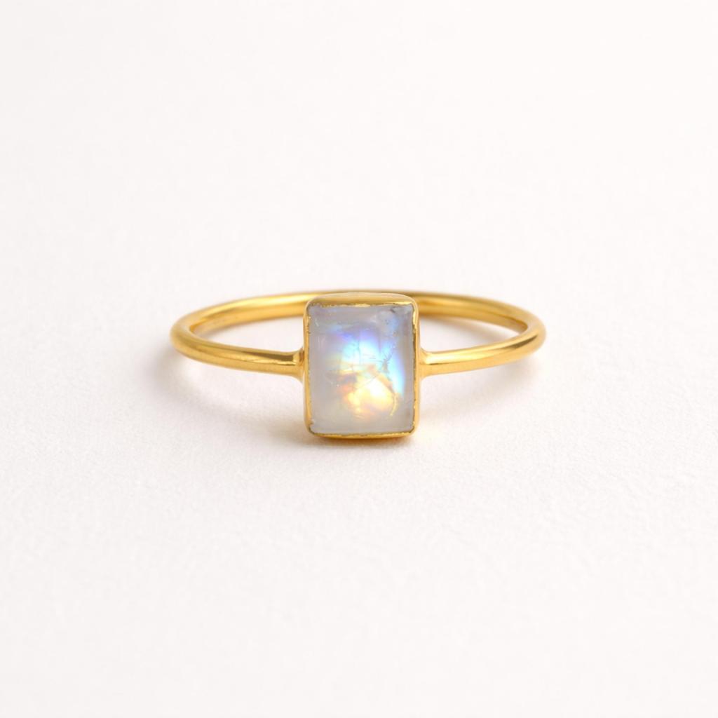 Rainbow Moonstone Minimalist Gold Plated 925 Sterling Silver Ring, Handmade Bohemian Jewelry for Women