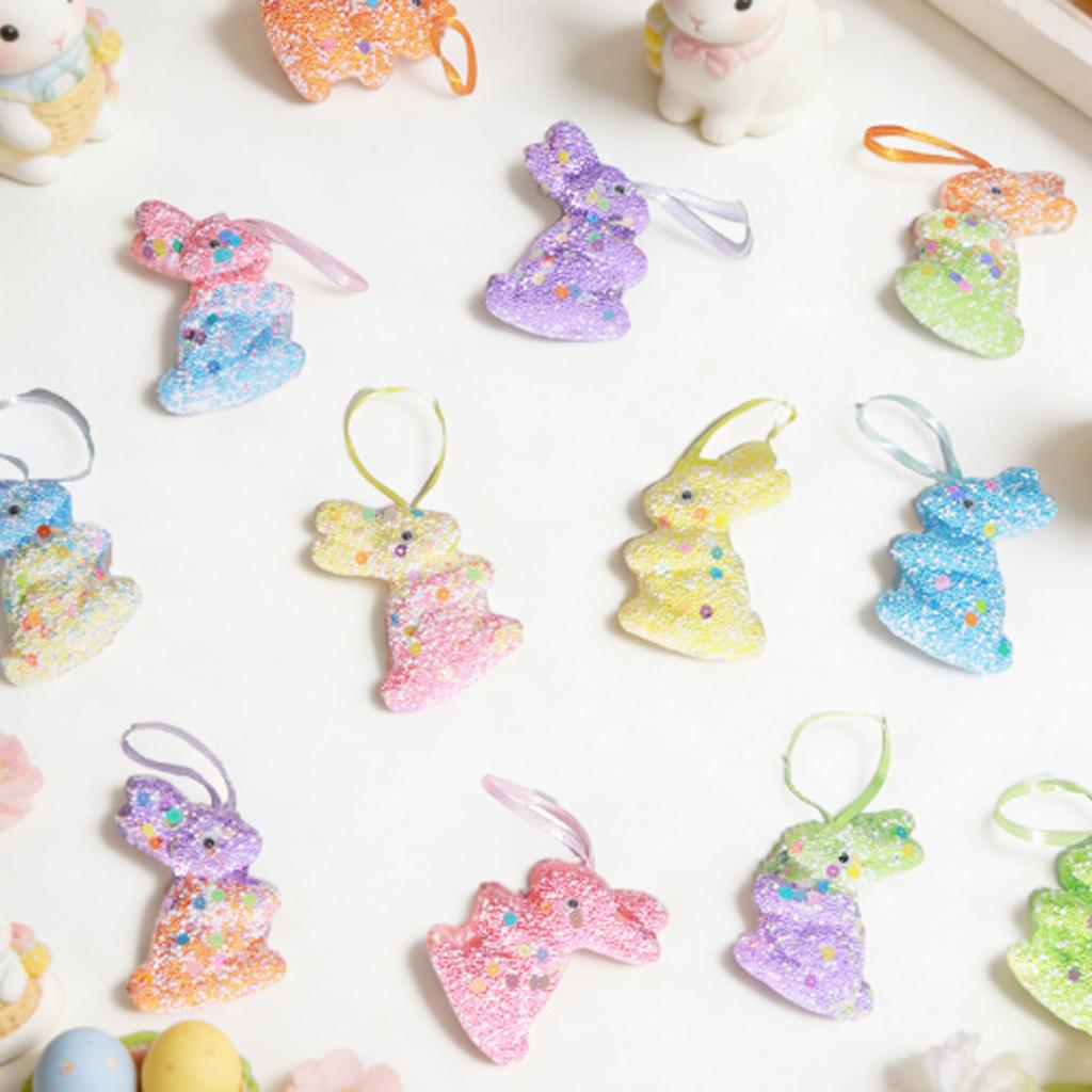 Diversity of styles: The set includes 12 rabbits in different colors (yellow, orange, green, , purple, blue, etc.), both and gradient mixed colors, which can be hung in combination or dispersed to meet decorative needs.
