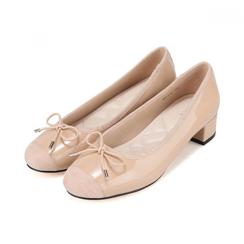 The women's pumps made of cowhide patent leather and suede combination offer style and comfort simultaneously.