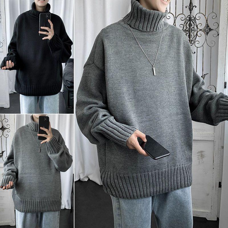 Large Autumn/Winter Solid High Collar Men's Warm Sweater Knit
