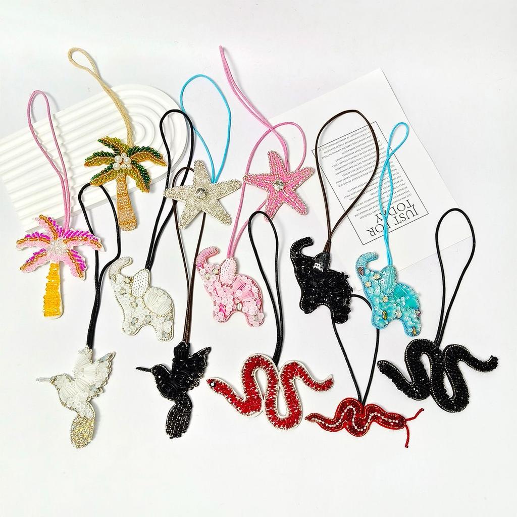 DIY Felt Patch Brooch Pearls Tassels Handmade Rhinestone Beaded Coconut Tree Crystal Bag Lanyard Patch Beading Applique Patch