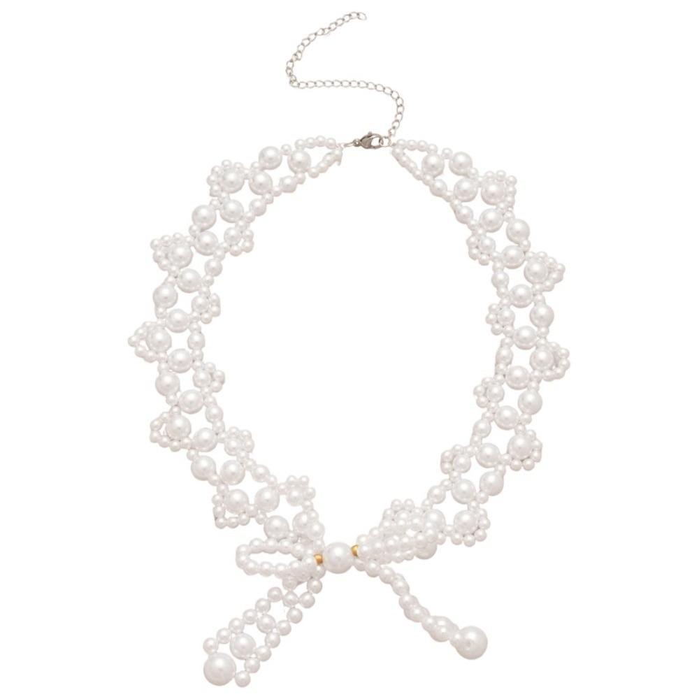 Imitation Pearl Clavicle Chain Women Bead Collarbone Chain Fashion Bow Necklace Girls