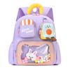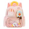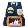This children's kindergarten backpack features a durable oxford cloth construction with a polyester lining, measuring approximately deep. It incorporates ergonomic curved shoulder straps to support comfort and reduce shoulder strain, making it suitable for young learners. The playful animal patterns and colorful accents enhance its appeal for school use. Ideal for preschool outings, it combines fun design with practical features. Easy to clean with a damp cloth ensures maintenance convenience.