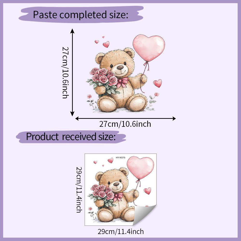 Pink Rose Balloon Teddy Bear Wall Sticker Self-Adhesive Removable Living Room Hallway Dorm Home Decor
