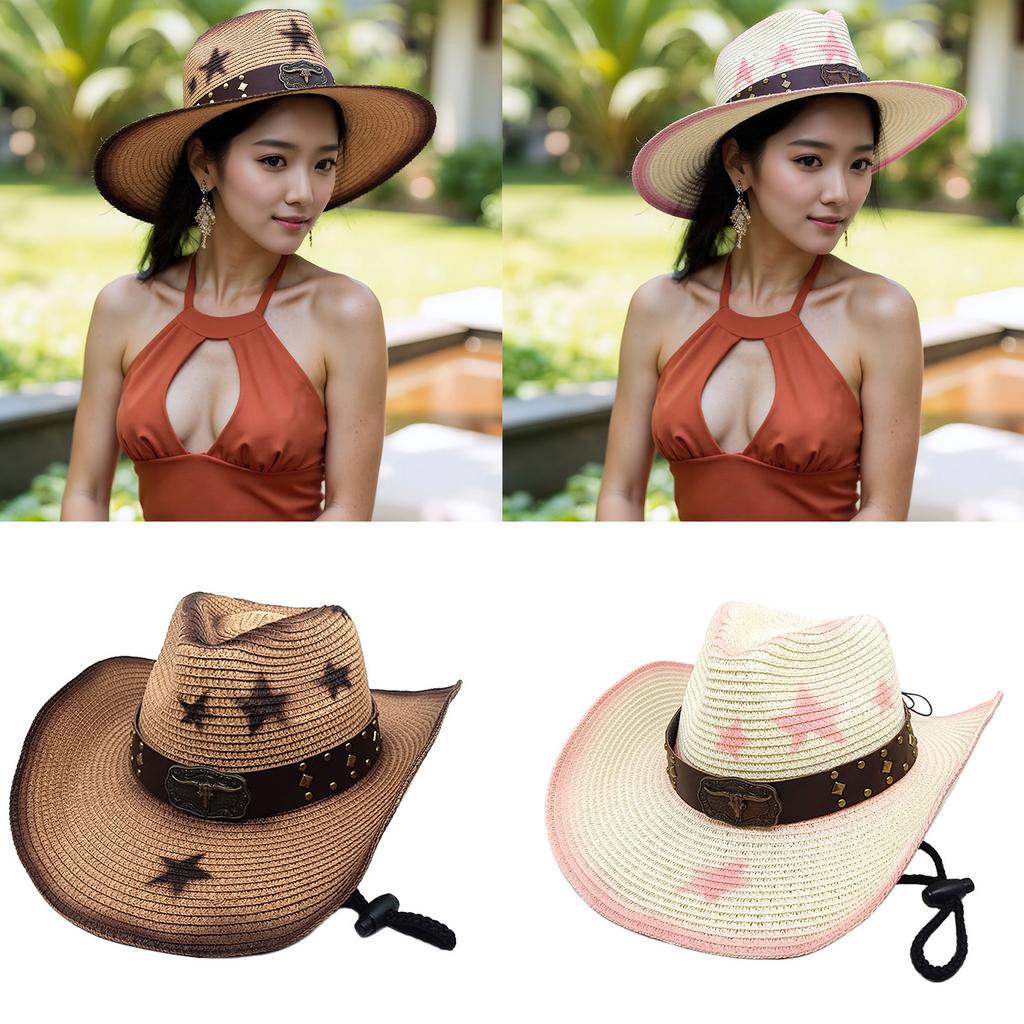 Vintage Straw Hat Beach Protable Hat Men's Western Hat Retros Styles Hat for Men and Women