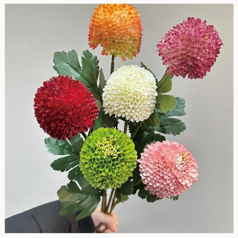 1.Beautiful Simulation September Chrysanthemum Silk Fake Flowers Hotel Decoration Artificial Onion Ball Branch Green Flower.