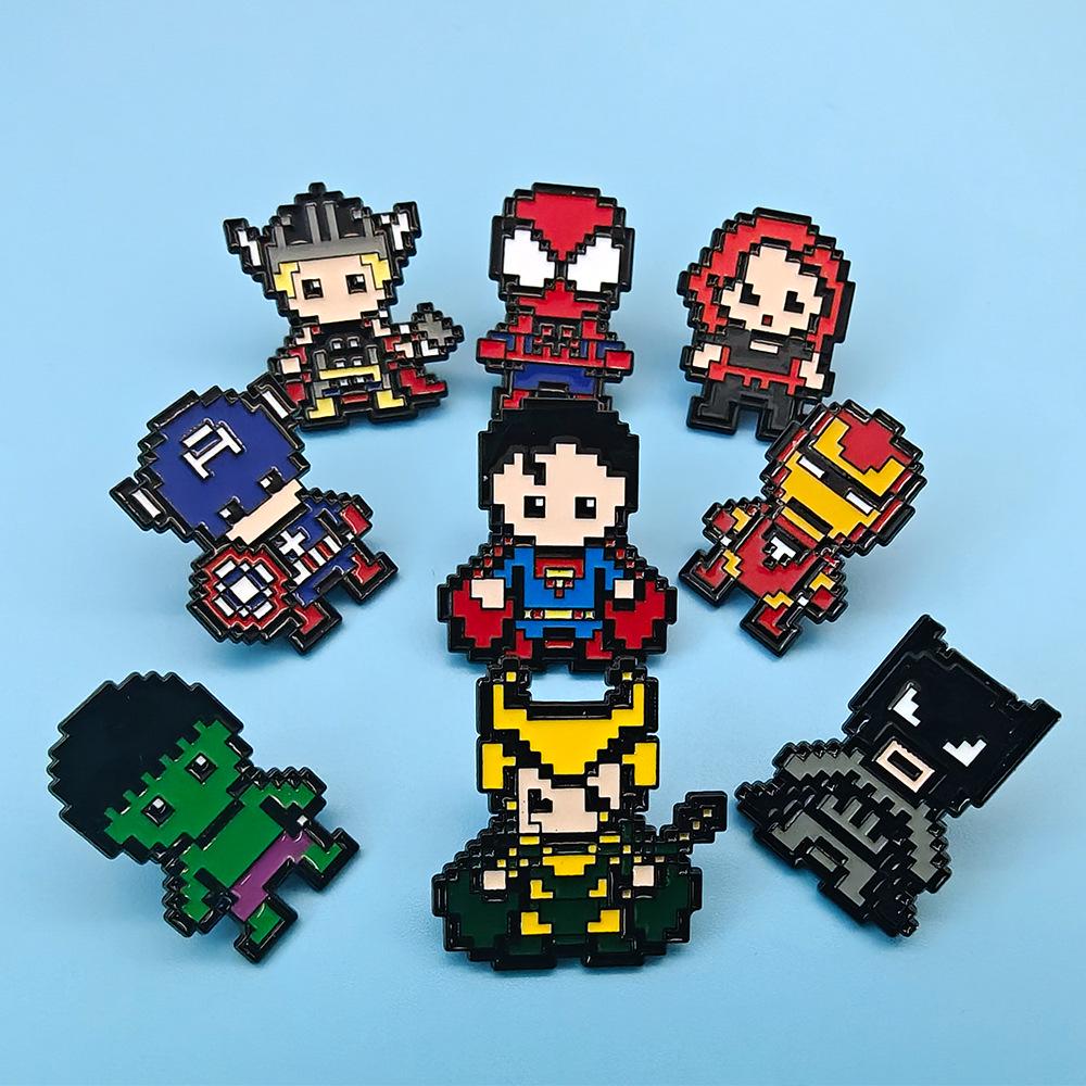Pixel Avengers Brooch: Creative Spider-Man & Iron Man Superhero Badge