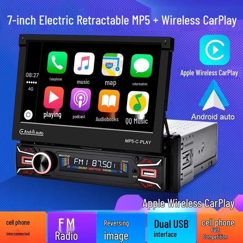 7" Retractable Screen Car DVD Navigation MP5/MP3 Player with Radio & CD Support