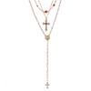 This layered alloy necklace features a geometric design with a cross pendant, measuringin length. Crafted with electroplated finish, it resists tarnishing and adds a high-end touch. Ideal for daily wear or special occasions, it complements trendy and individual styles. Wipe clean with a soft cloth to maintain shine.
