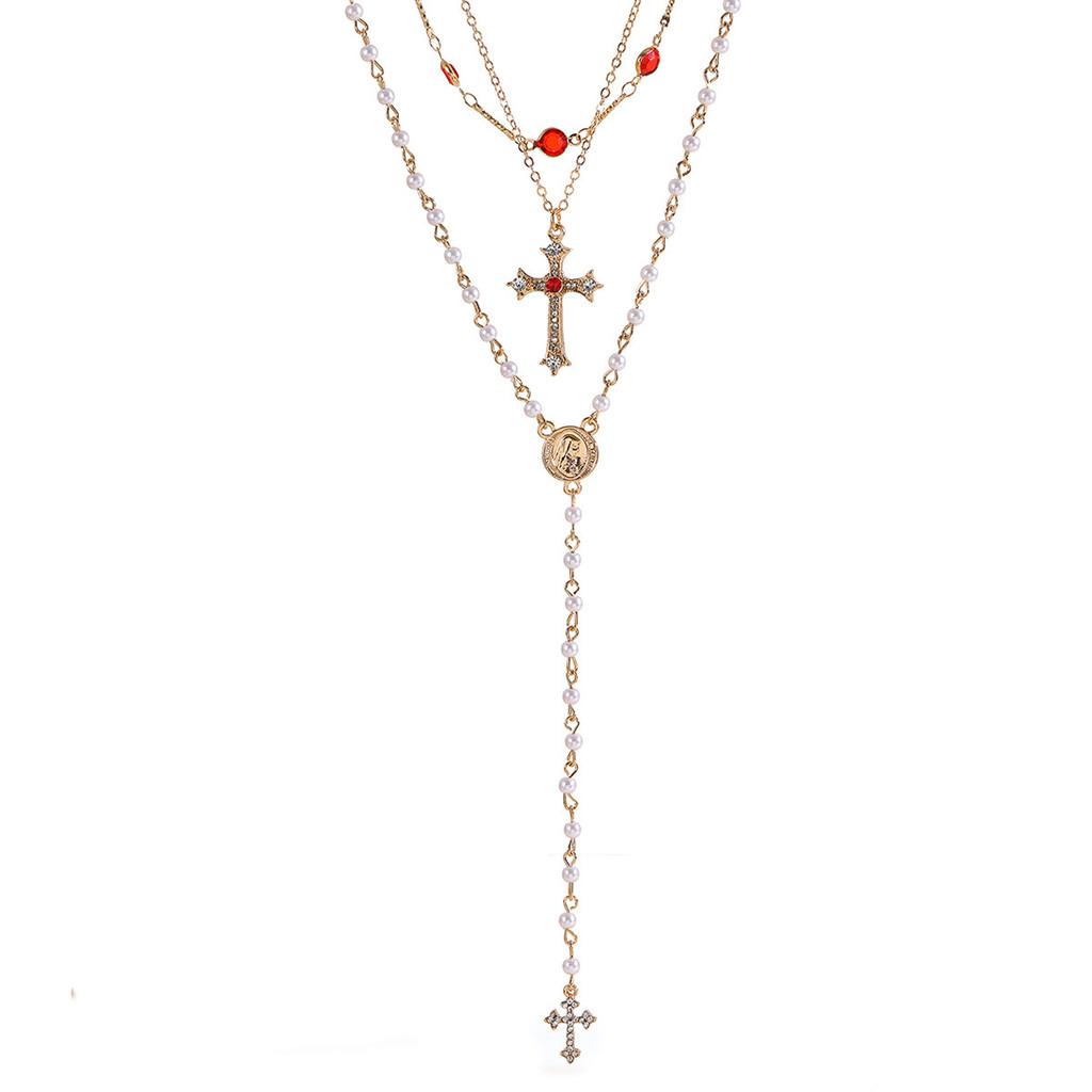 Cross Pendant Necklace With Pearl Look Geometric Design For Womens Fashion Accessories