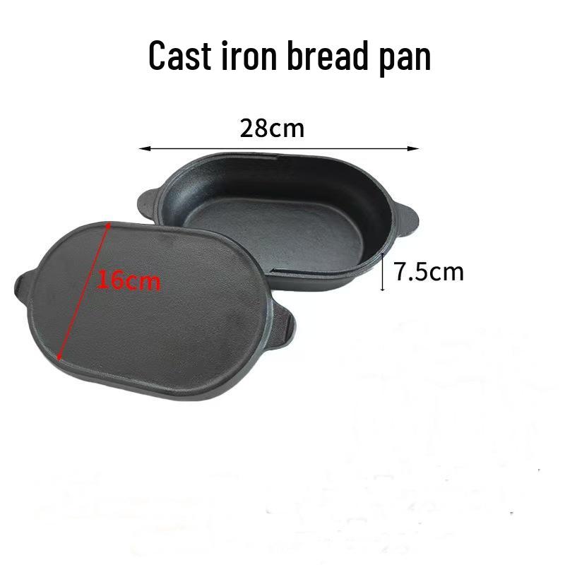 Oval Cast Iron Bread Baking and Stewing Pot - Multi-Functional, Dual-Use for Frying and Baking, Household Thickened Design.