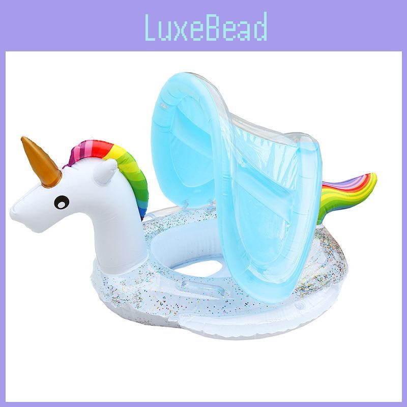 Baby Inflatable Swimming Ring With Sunshade For 1-3 Year Old Boys And Girls Cartoon Pattern Anti-flip Pvc Material Lightweight 580g