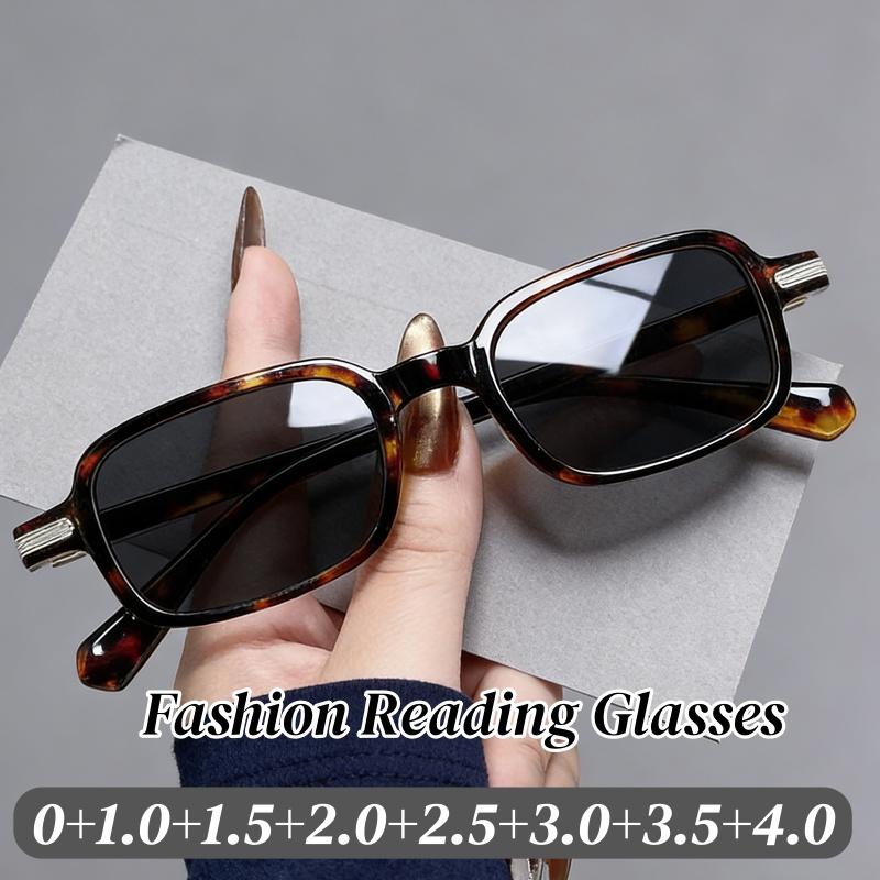 Fashionable Men Reading Glasses Small Square Frame Far Sight Sunglasses for Women High Definition Gray Lens Presbyopia 0+1.0+4.0
