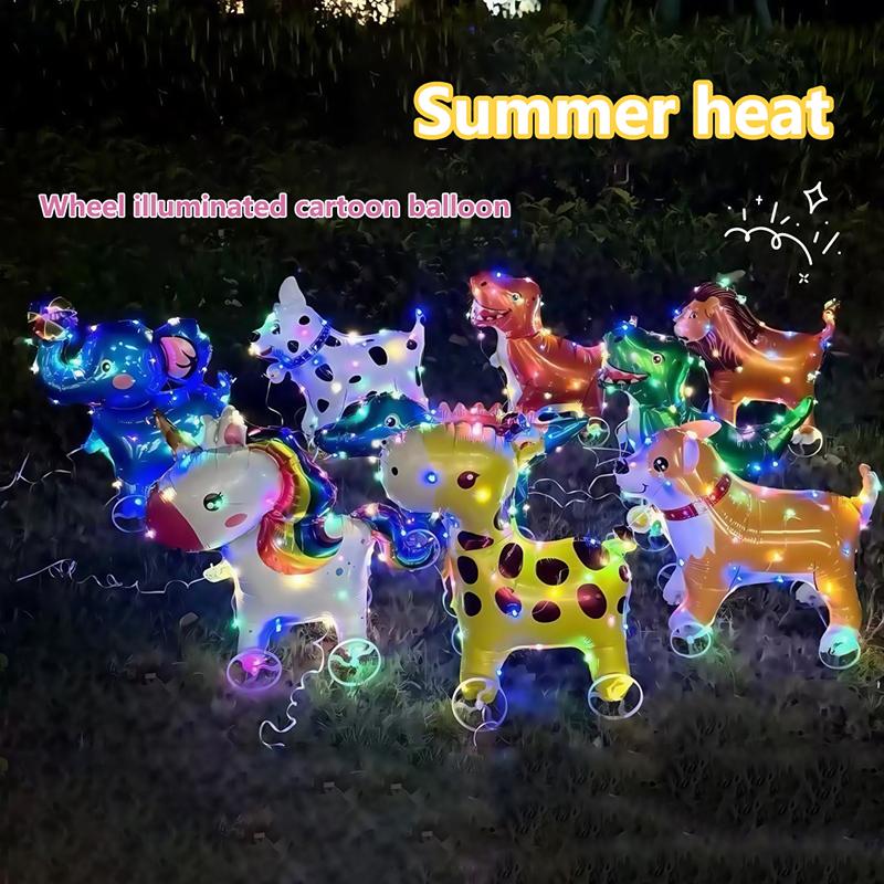 Glowing 4D Cartoon Foil Balloons Horse Stand Walking Balloon Wheel Accessories With Wheel For Kids Birthday Party Decoration