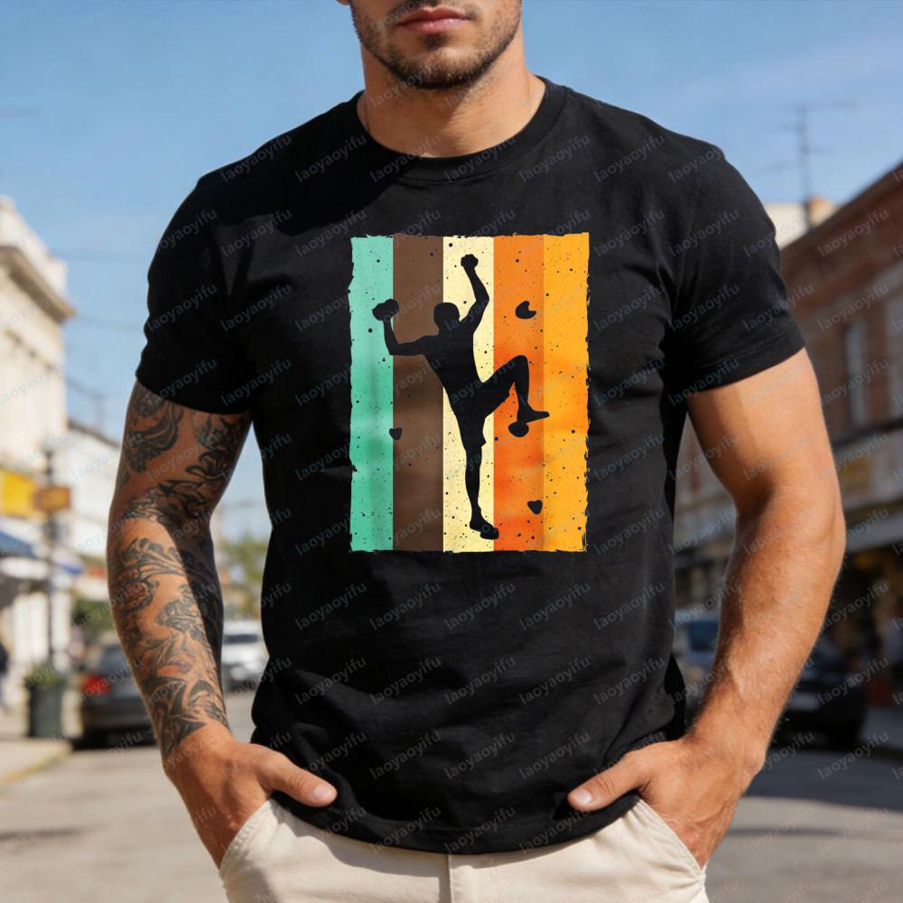 Men TShirt Summer Casual Fashion Vintage Climbing Pattern Cotton Short Sleeve Top Outdoor Gift Sporty Style Mens Wear