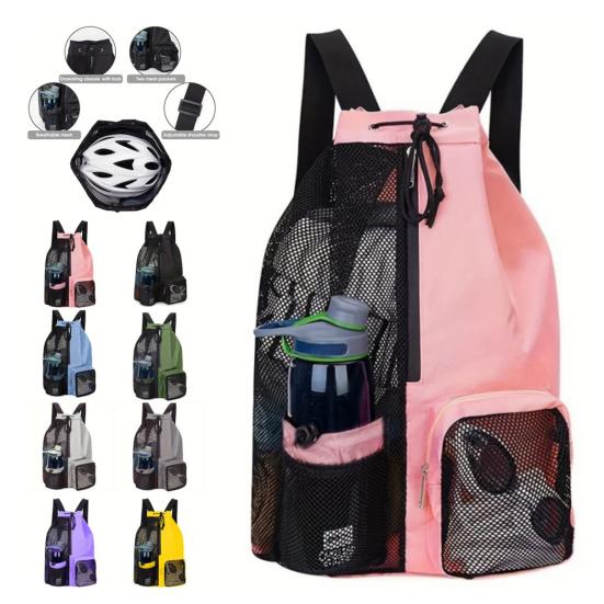 The backpack's large size offers ample storage while remaining lightweight. Its breathable mesh design promotes quick water drainage and reduces odor buildup. Ideal for swimming, gym workouts, sports training, hiking, camping, and beach activities, this backpack also makes a thoughtful gift for fitness enthusiasts.