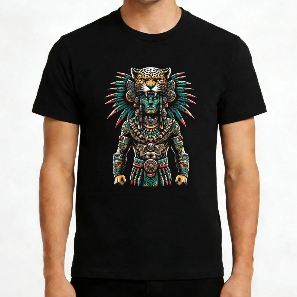 Aztec Jaguar Warrior Tribal Art Men TShirt Cotton Casual Unisex Wear Gift for Him Fashion Statement Shirt Oversized Tops