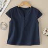 ZANZEA Women Casual V-Neck Solid Color Short Sleeve Cotton Blouse