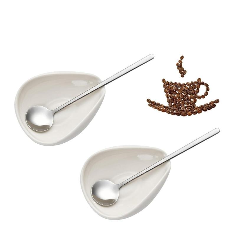 Pack of 4/8 Ceramic Coffee Bean Showcasing and Weighing Dishes and Coffee Bean Exhibition Plate Spoon Set for
