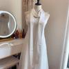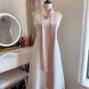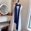 Navy Blue Solid Silk Ribbon Belt with Skirt Decoration
