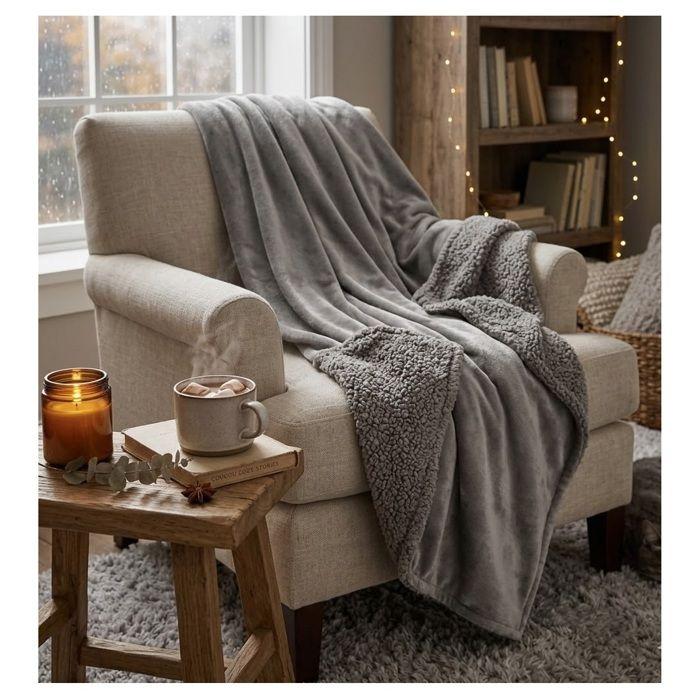 Plaid - EDEN - 130 x 160 cm - Gris clair - Uni - Douillet, texture épaisse