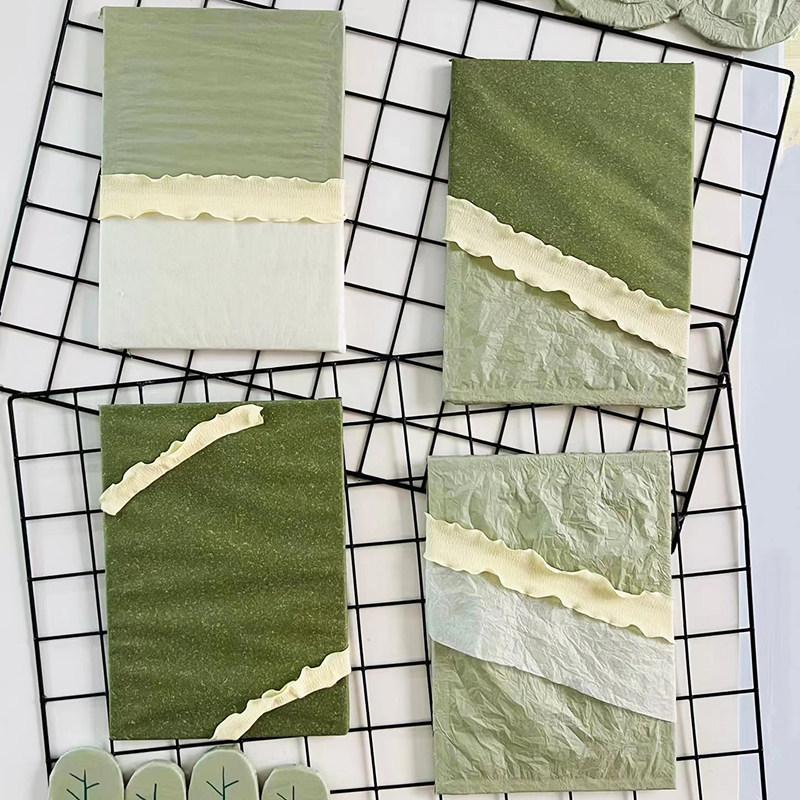 Forest Green Textured Paper for Kindergarten Creations - Morandi Palette, Matcha Color, Pear Skin Design, Green Decor.