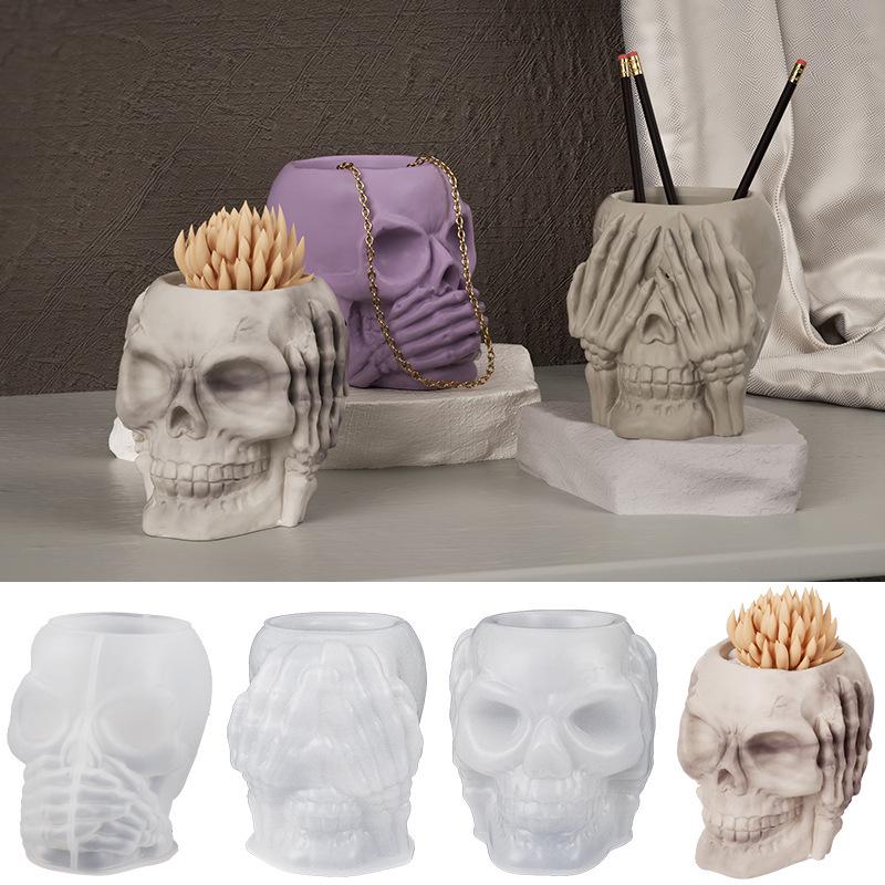 DIY Epoxy Skull Ear Muffs & Mask Pen Holder Mold - Halloween Silicone Ornament Box