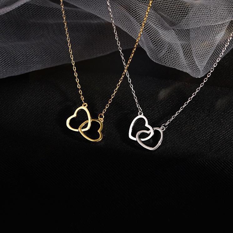 Simple Temperament Hollow Love Double Ring Pendant Collarbone Chain Women's Trendy Fashion Heart-shaped Interlocking Necklace