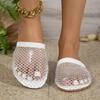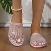 Women Slippers Summer New Round Head Slippers Water Diamond Flat Home Beach Sandals