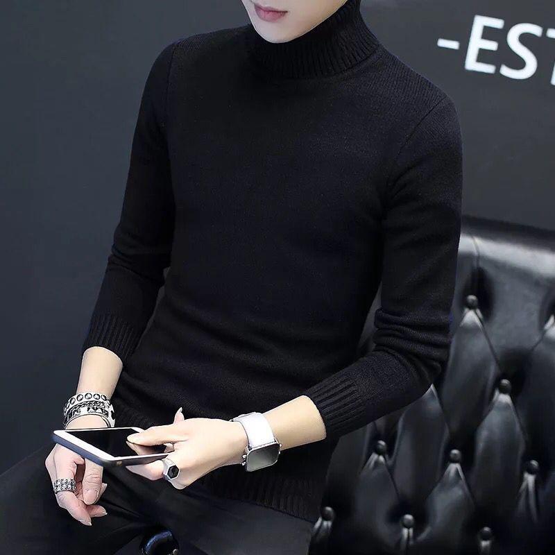 Fine Youthful Fashion Sweatwear Mens Anti-pilling High Quality Knitted Turtleneck Sweater Slim Fit Long Sleeve Pullover Solid Color Trend Men Clothing